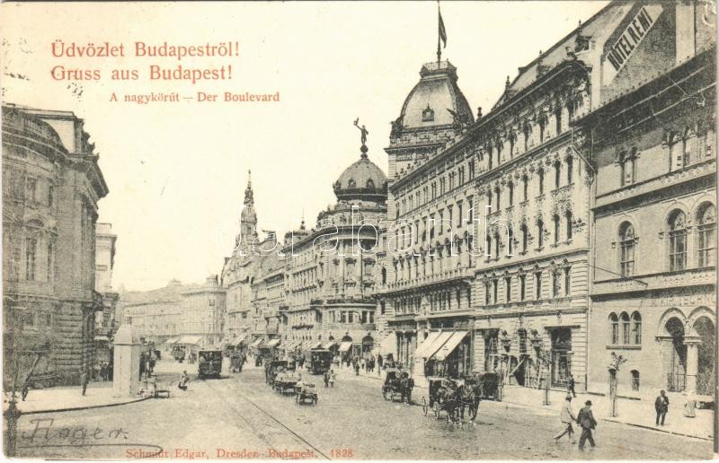 1900 Budapest VIII. Nagykörút, villamos, M. kir. Technológiai és Iparmúzeum, Hotel Rémi szálloda