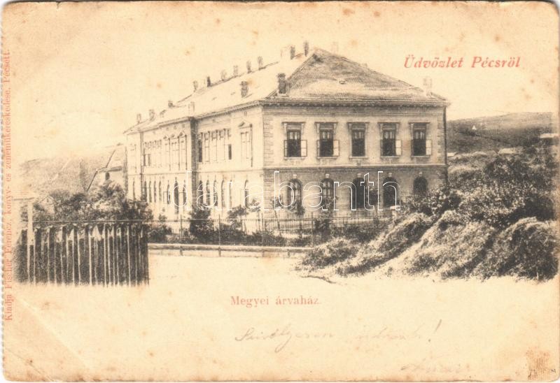 1900 Pécs, Megyei árvaház. Fischer Ferenc kiadása (vágott / cut)