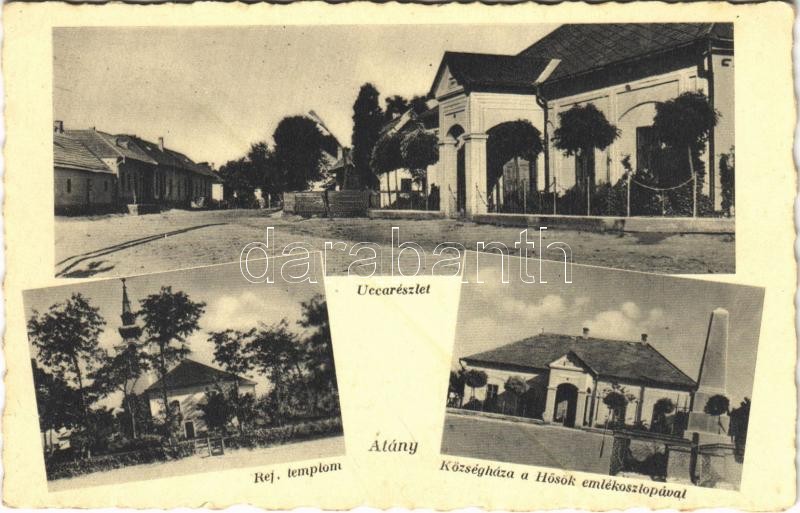 1942 Átány (Heves), utca, Református templom, községháza, Hősök emléko...