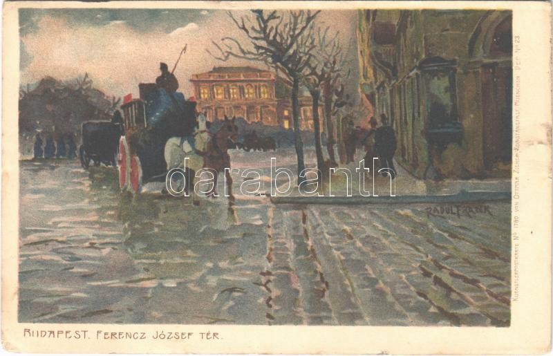 Budapest V. Ferenc József tér. Kuenstlerpostkarte No. 1780. von Ottmar Zieher Kunstanstalt litho s: Raoul Frank (szakadás / tear)