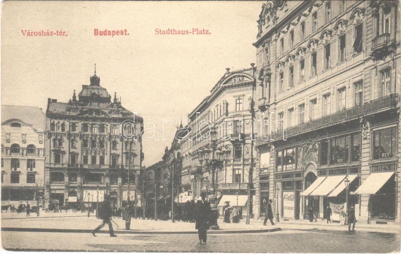 Budapest V. Városház tér, üzletek. M. T. és F. I. Koch és Pór kiadása (EK)