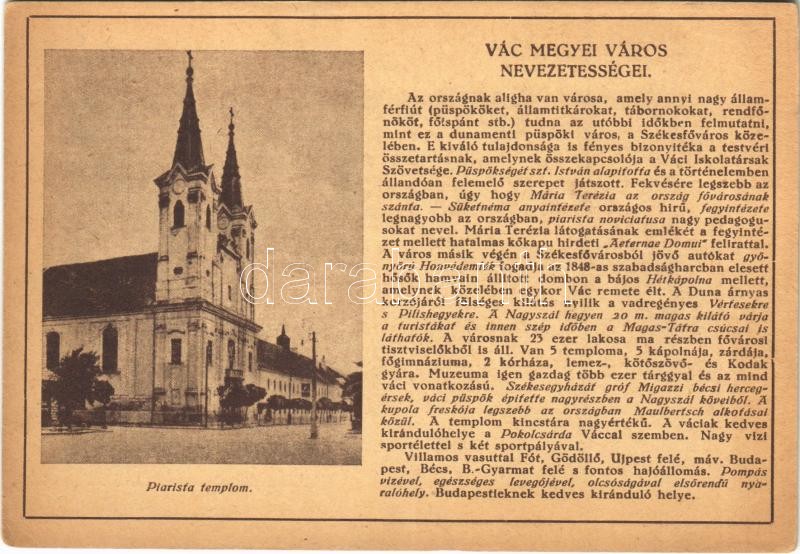 Vác, Város nevezetességei: Piarista templom. Farkasfalvi Kornél kiadás...