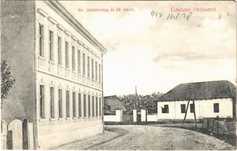 1912 Oklánd, Homoródoklánd, Ocland; Kir. Járásbíróság és állami iskola...