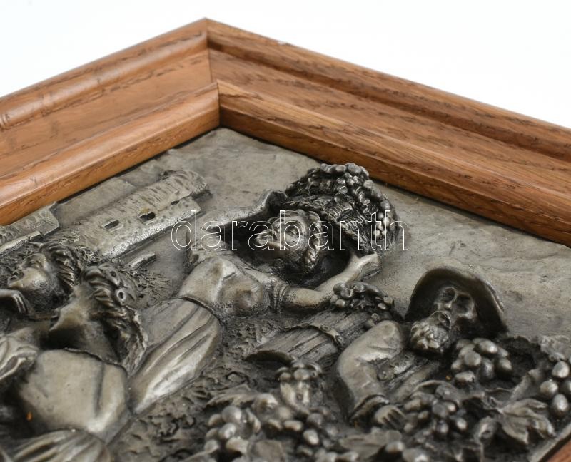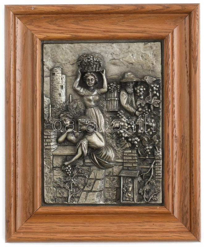 Szüret, ón falikép fa keretben, külső méret: 26x21,5 cm