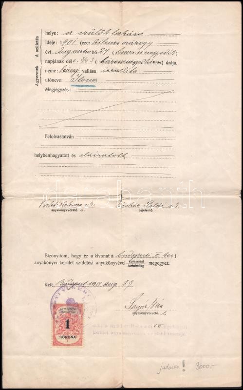 https://www.darabanth.com/en/399-Online-auction/399.0/Art-and-other-collectibles/Judaica~500026/1911-Bp-Szuletesi-anyakonyvi-kivonat-Fischer-Poldi-izraelita-vallasu-egyen-szamara-okman~II2444153