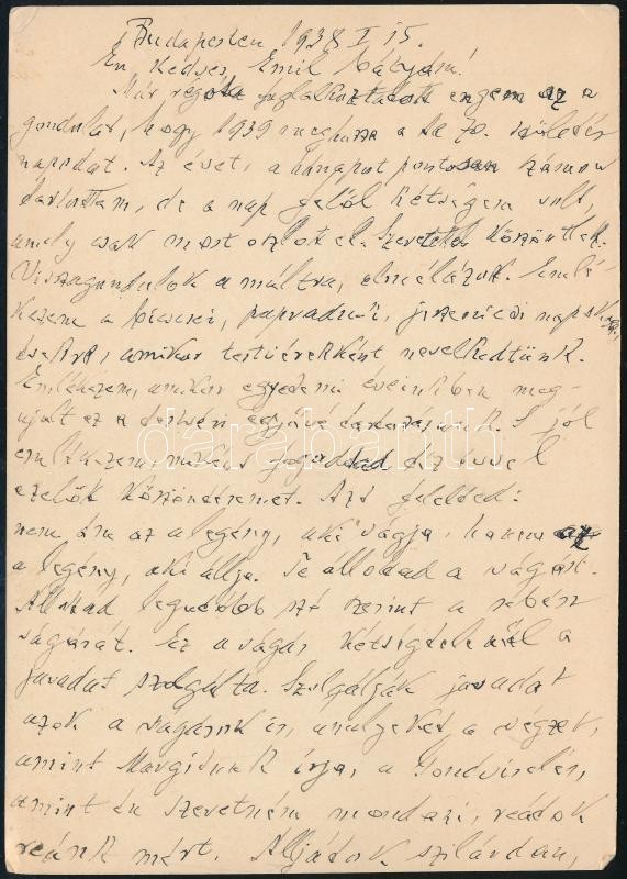 1938 Heller Bernát (1871-1943) irodalomtörténész, orientalista, az Országos Rabbiképző Intézet tanára által saját kézzel írt levelezőlap