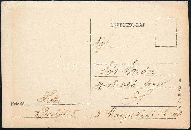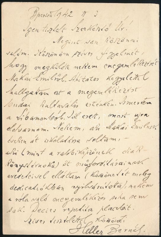 1942 Heller Bernát (1871-1943) irodalomtörténész, orientalista, az Országos Rabbiképző Intézet tanára által saját kézzel írt levelezőlap