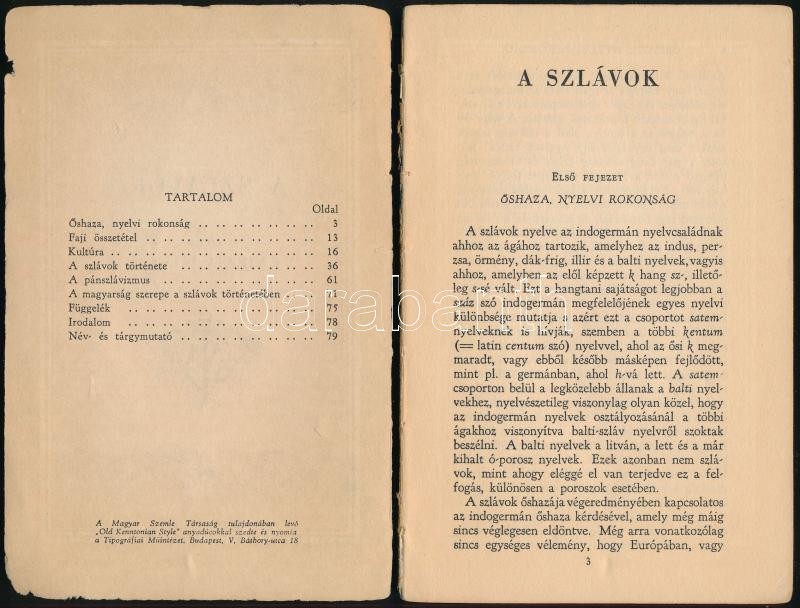 Kniezsa István: A Szlávok. Bp., 1932. Magyar Szemle Társaság, 80 p. Ki... https://www.darabanth.com/en/399-Online-auction/399.0/Books/Books-History~1500004/Kniezsa-Istvan-A-Szlavok-Bp-1932-Magyar-Szemle-Tarsasag-80-p-Kiadoi-papirkotes-szaka~II2418032