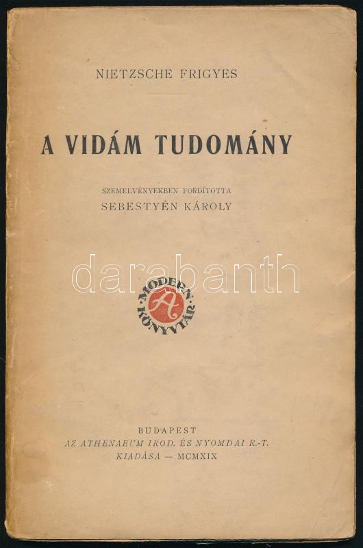 Nietzsche Frigyes: A vidám tudomány. Ford.: Sebestyén Károly. Bp., 191... https://www.darabanth.com/en/399-Online-auction/399.0/Books/Books-Social-sciences~1500010/Nietzsche-Frigyes-A-vidam-tudomany-Ford-Sebestyen-Karoly-Bp-1919-Athenaeum-Kiadoi-pap~II2443749