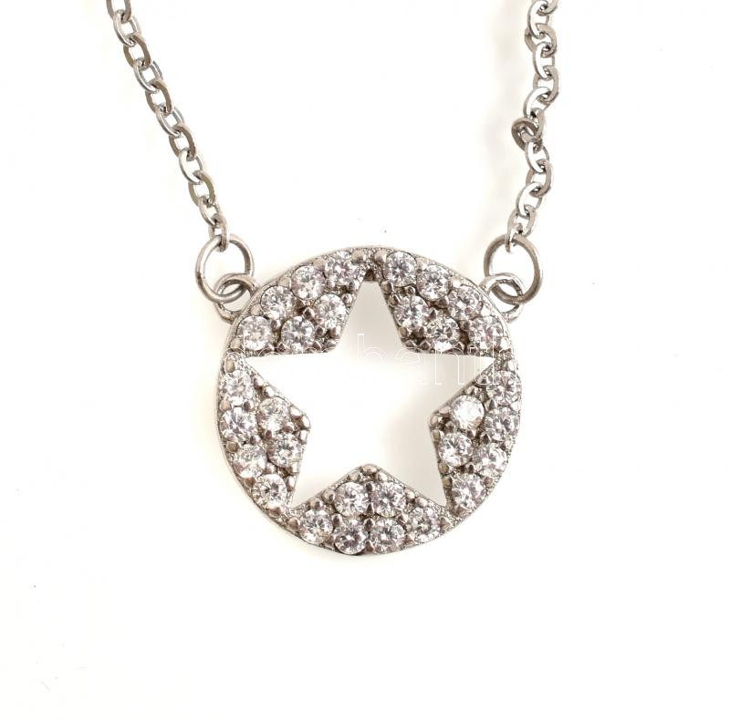 Ezüst(Ag) anker lánc, köves csillag függővel, jelzett, állítható h: 40...