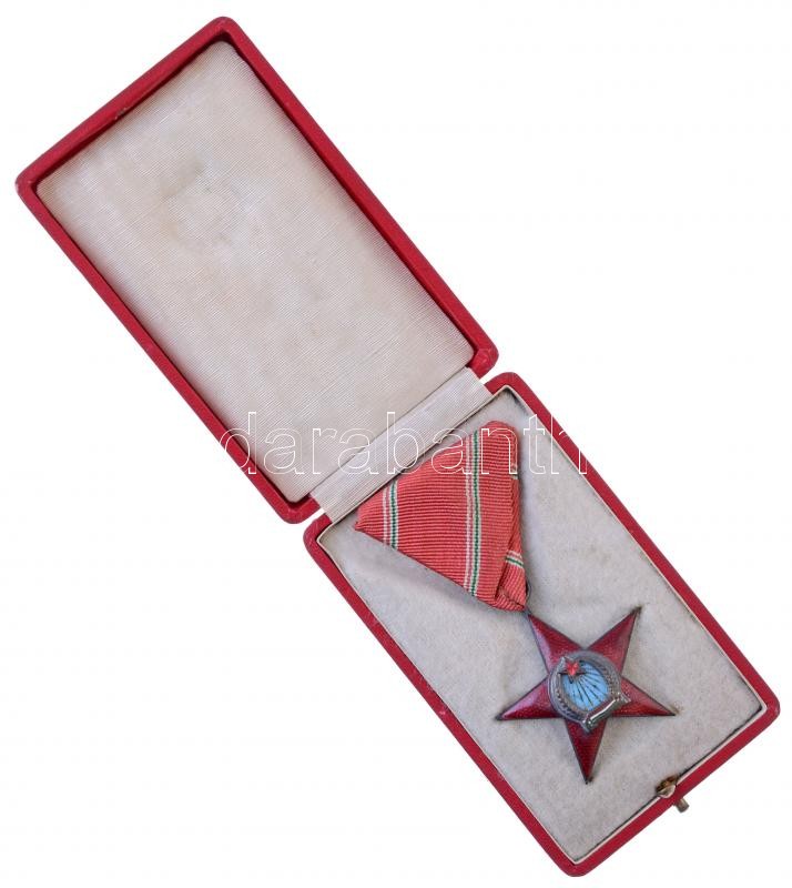 Hungary 1949. "Medal of Merit of the Hungarian Peoples Republic Silver class" silvered, enamelled Br decoration in original case C:XF the hammer and the wheatear missing from the coat of arms