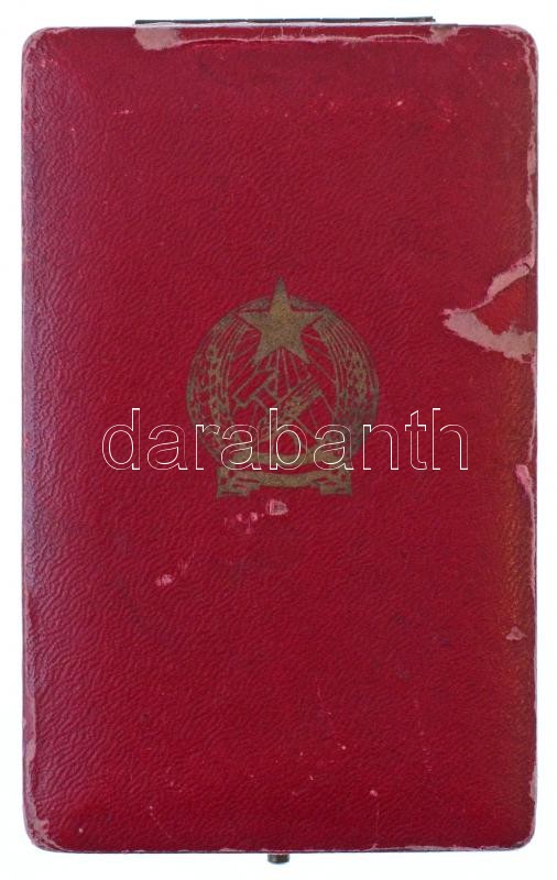 Description: 1949. "A Magyar Népköztársasági Érdemérem ezüst fokozata" ezüstözött, zománcozott bronz kitüntetés eredeti tokban T:2 a címerből hiányzik a kalapács és a búzakalász