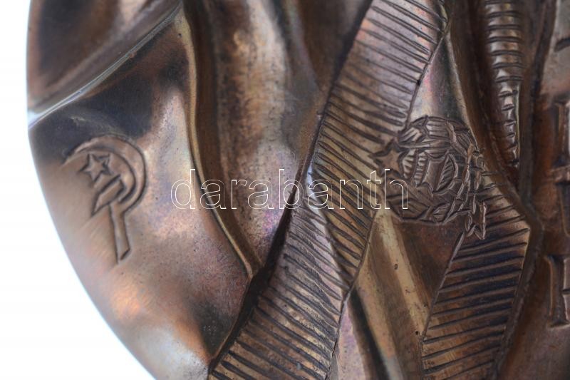 Description: Asszonyi Tamás (1942-) 1979. "Szovjet-magyar közös űrrepülés" Br plakett peremen "AT" beütéssel, sorszám nélkül, eredeti tokban (514g/100mm) T:1 / Hungary 1979. "Soviet-Hungarian Common Space Flight" commemorative medallion, on the edge with "AT" mark, without numbering, in original case. Sign.: Tamás Asszonyi (514g/10mm) C:UNC