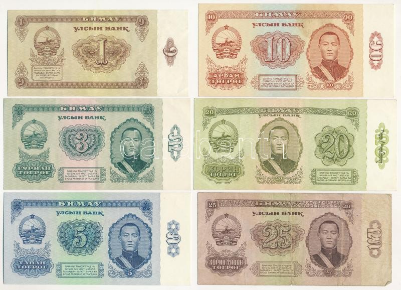 Mongolia 1966. 25 Tugrik + 1981. 5 Tugrik + 10 Tugrik + 20 Tugrik + 1983. 1 Tugrik + 3 Tugrik C:AU-F