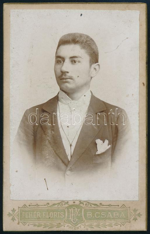 1896 Barabás kétegyházi (Békés megye) községi írnok vizitkártya fotója Fehér Flóris műterméből, hátoldalon saját kezű aláírásával, 10,5×6,5 cm