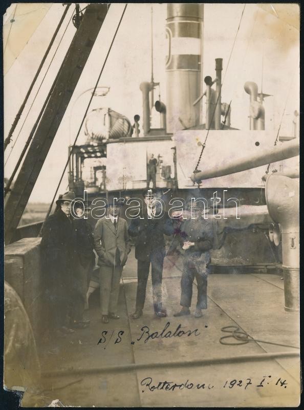 1927 Rotterdam, S/S Balaton fedélzetén, sérült fotó, sarokhiánnyal, 16...