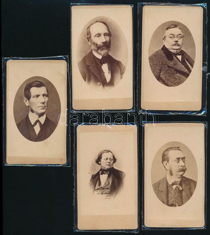 cca 1880 Bécsi, osztrák orvosokat ábrázoló fotók, hátoldalon feliratozva (Prof. Dr. Hebra, Prof. Duchak, Prof. Skoda, stb.), 5 db, 10,5×6,5 cm / Austrian doctors, 5 vintage photos, with description on the verso