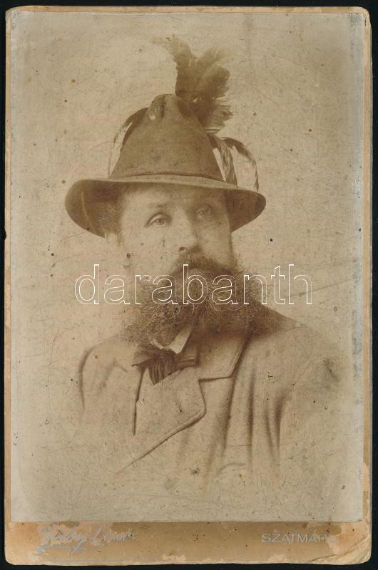 cca 1900 Vadász portréja, keményhátú fotó Berky Dezső szatmári műtermé...