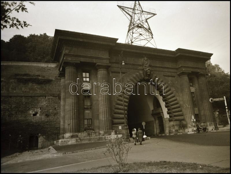 Description: cca 1950 Budapest, több méteres vörös csillag az alagút bejárata felett, Kotnyek Antal (1921-1990) budapesti fotóriporter hagyatékából 1 db NEGATÍV, 6x9 cm