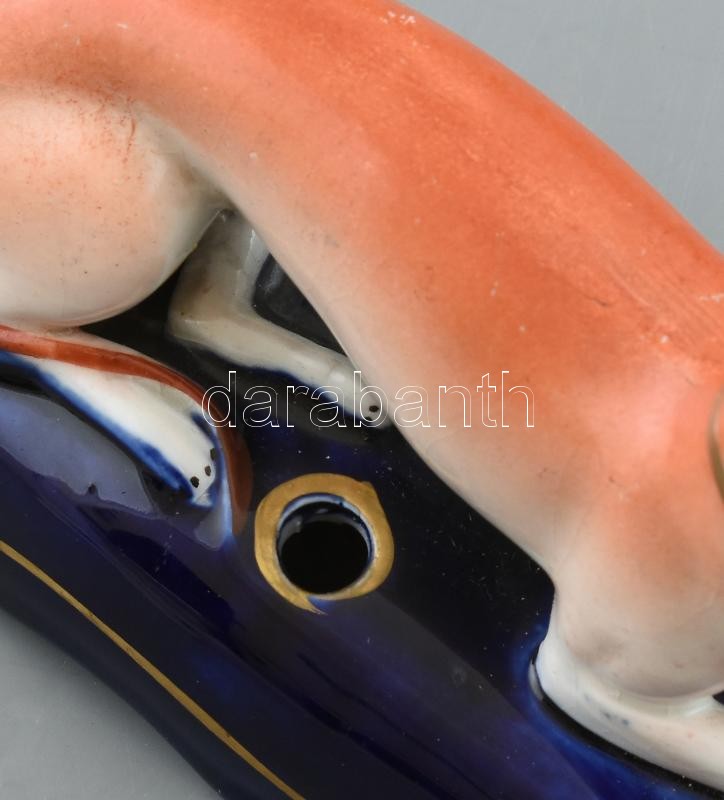 Porcelán agár kutya formájú tolltartó, mázrepedésekkel, kopásokkal. m:...