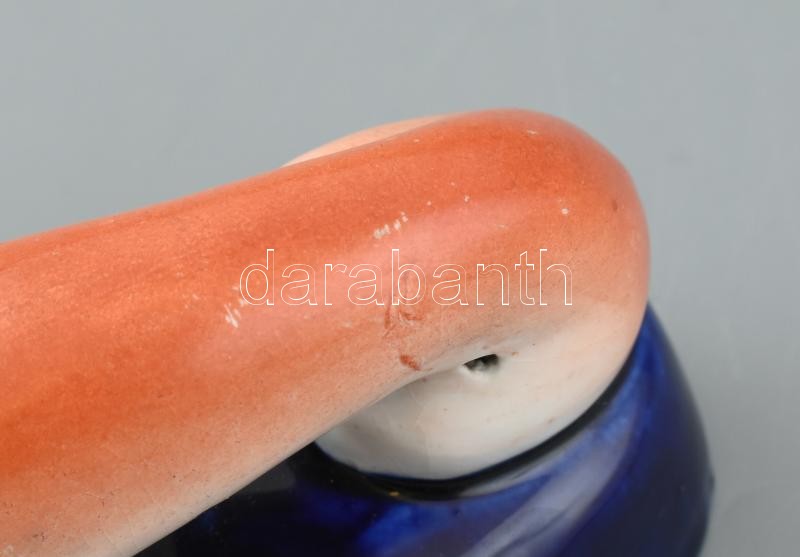 Porcelán agár kutya formájú tolltartó, mázrepedésekkel, kopásokkal. m:12cm