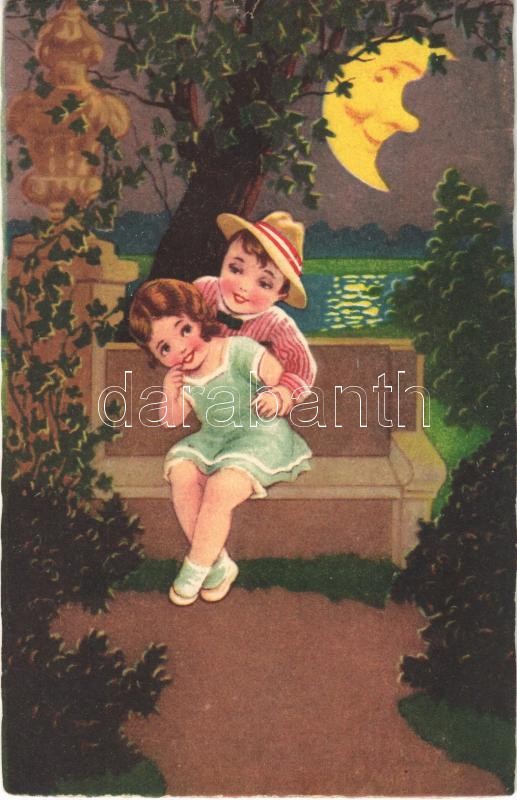 Children art postcard, romantic couple. Amag No. 0275. (EB)