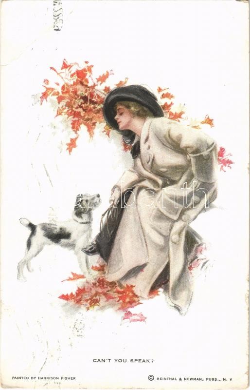 1913 "Can't you speak?" Lady art postcard, lady with dog. Reinthal & Newman No. 412. s: Harrison Fisher (EB)