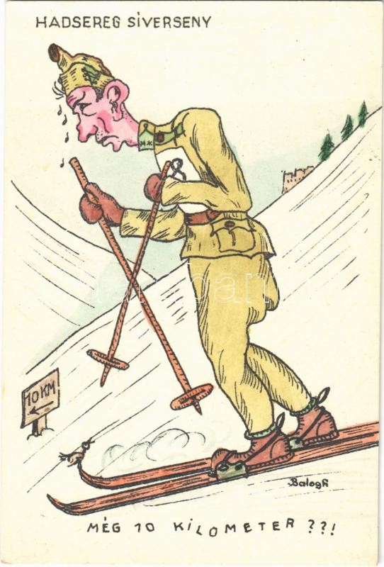 Hadsereg síverseny. Még 10 kilométer??!... Második világháborús magyar katonai humor, síelés / WWII Hungarian military humour, skiing s: Balogh