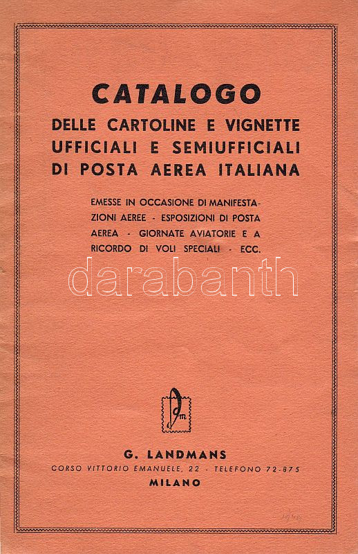 1948 Landmans Catalogo delle cartoline e vignette ufficiali e seminffi... https://www.darabanth.com/en/4-Major-auction/4.1/Foreign-philately-and-postal-history/~1152/1948-Landmans-Catalogo-delle-cartoline-e-vignette-ufficiali-e-seminfficiali-di-posta-aerea-italiana~II86047