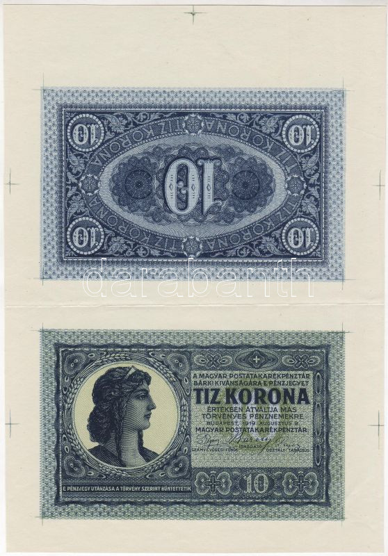 1919. augusztus 9. 10K próbanyomat elő- és hátoldal együtt nyomva/Prob...