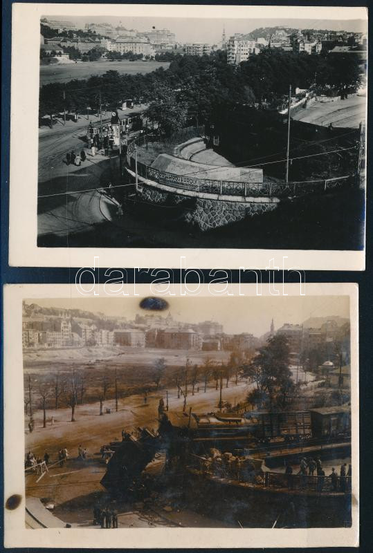 Description: 1935-1948 A Budapest, Déli pályaudvari mozdonyforgató az állomás Vérmező felőli részén és az 1948. szeptember 18-i vasúti katasztrófa, 2 db eredeti fotó, hátoldalt dátumozva, 9×12 cm