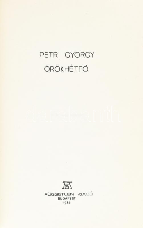 Petri György: Örökhétfő. Bp., 1981. AB Független Kiadó. 79+4 p. Első k... https://www.darabanth.com/en/40-Major-auction/40.1/Books/Books-Other-rarities~16440/Petri-Gyorgy-Orokhetfo-Bp-1981-AB-Fuggetlen-Kiado-79plus4-p-Elso-kiadas-Az-elso-nyomt~II2882665