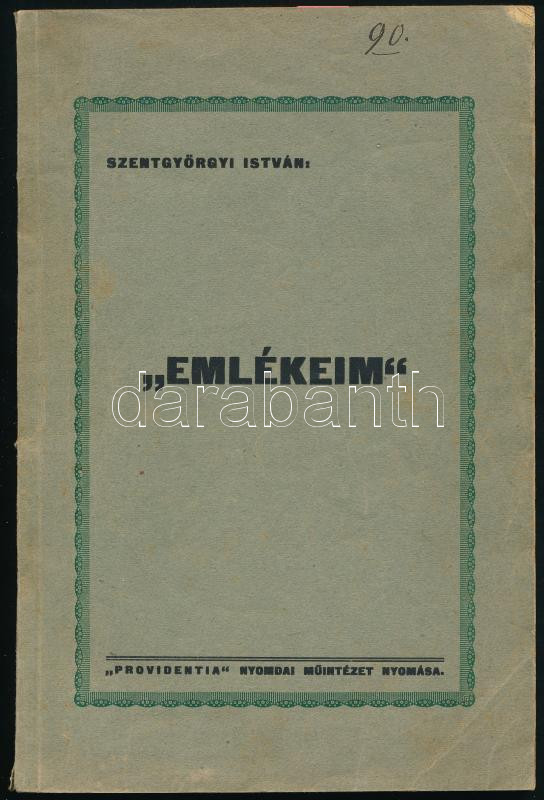 Szentgyörgyi István: "Emlékeim". [Kolozsvár, 1923.],Szerzői,(Provident... https://www.darabanth.com/en/40-Major-auction/40.1/Books/Books-Other-rarities~16440/Szentgyorgyi-Istvan-Emlekeim-Kolozsvar-1923-Szerzoi-Providentia-ny-166-p-Kiadoi-p~II2767473