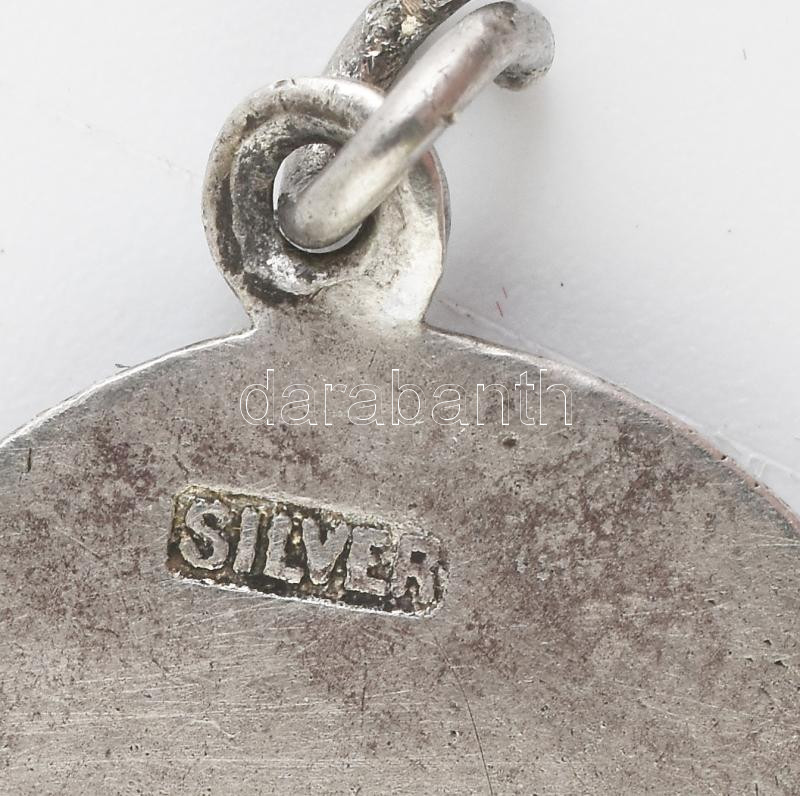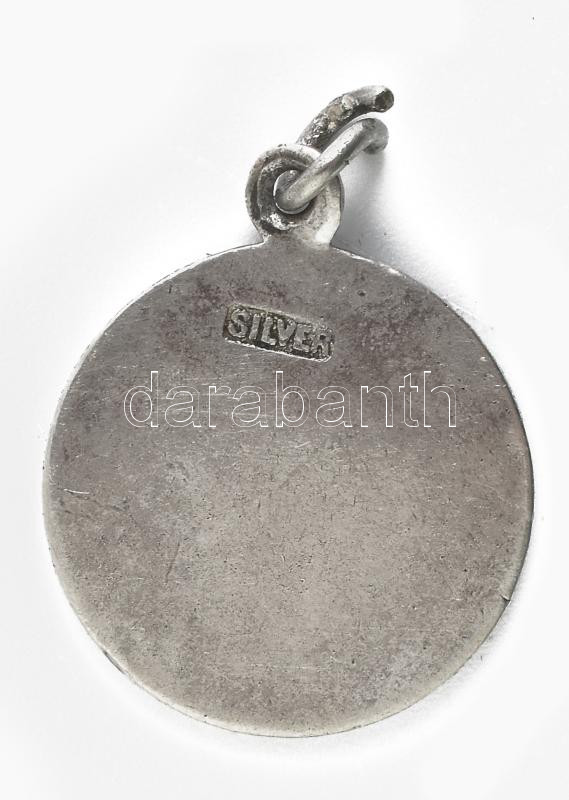 Ezüst (Ag) medál, jelzett, zománcos, kis hiba, kővel, "This be your lucky star" bruttó: 2,9 g