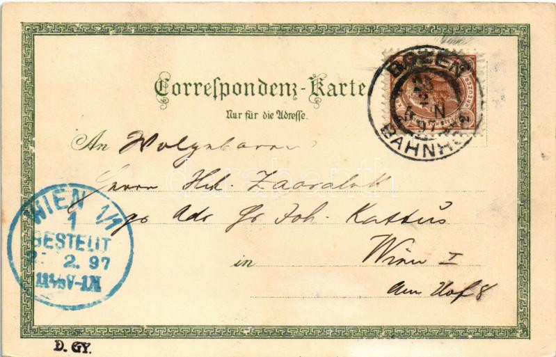1897 (Vorläufer) Bolzano, Bozen (Südtirol); Burg Runkelstein, Mendel u... https://www.darabanth.com/en/40-Major-auction/40.1/Postcards/Italy~16549/1897-Vorlaufer-Bolzano-Bozen-Sudtirol-Burg-Runkelstein-Mendel-und-Penegal-St-Magdalena-mi~II2871323