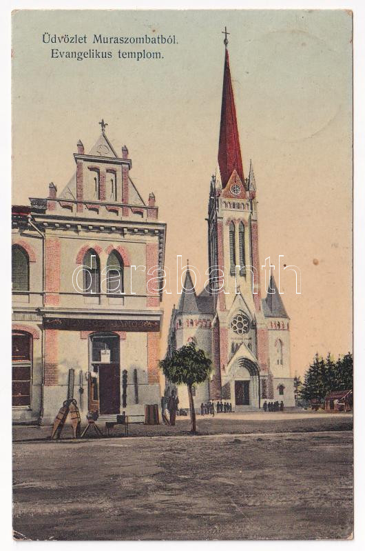 1913 Muraszombat, Murska Sobota; Evangélikus templom, Nemecz János üzl...