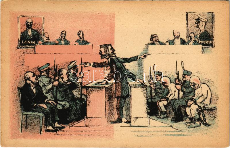 A vörös vádbiztos és a fehér ügyész, Horthy és Lenin arcképe. Fehérter... https://www.darabanth.com/en/40-Major-auction/40.1/Postcards/Propaganda-politics~16499/A-voros-vadbiztos-es-a-feher-ugyesz-Horthy-es-Lenin-arckepe-Feherterror-Magyarorszagon~II2878892
