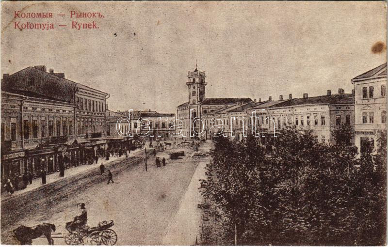 Kolomyia, Kolomyja, Kolomyya, Kolomea; Rynek / Ringplatz / market square, shops (fa)