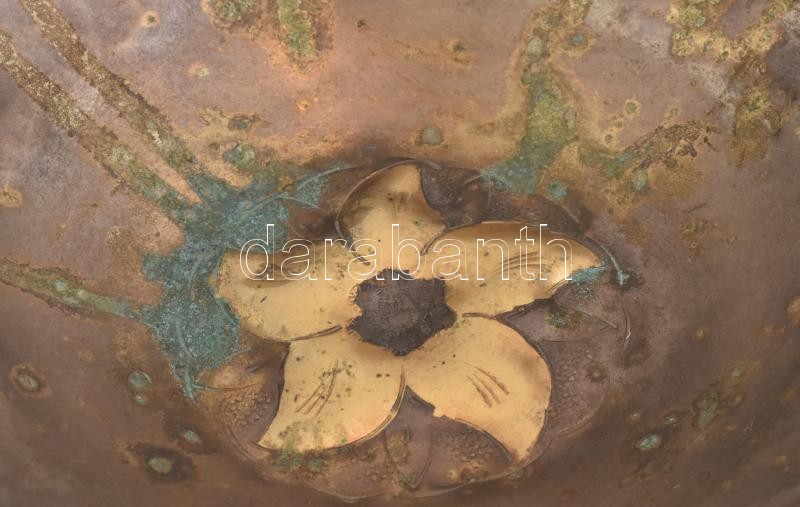 Szecessziós réz kínáló tál. XX. sz. eleje. Poncolt, csiszolt d: 31 cm