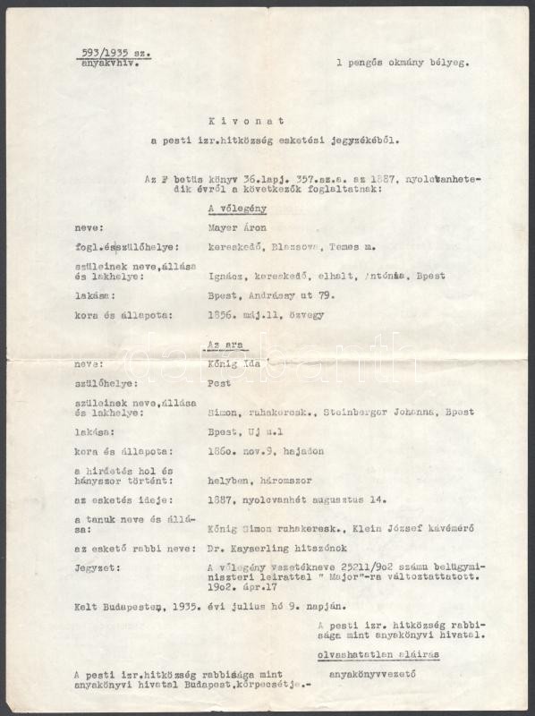 1901-1940 Buziási születésű személy anyakönyvi kivonatának másolata, a... https://www.darabanth.com/en/400-Online-auction/400.0/Art-and-other-collectibles/Judaica~500023/1901-1940-Buziasi-szuletesu-szemely-anyakonyvi-kivonatanak-masolata-a-Pesti-Izraelita-HitkC3~II2456365