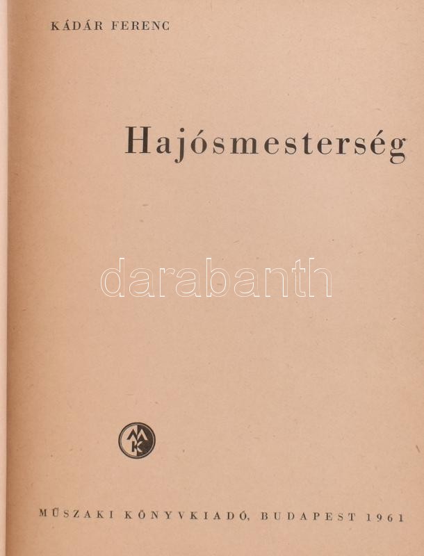 https://www.darabanth.com/en/400-Online-auction/400.0/Art-and-other-collectibles/Ships-Balaton~500025/Kadar-Ferenc-Hajosmesterseg-Bp-1961-Muszaki-Konyvkiado-Kiadoi-felvaszon-kotesben-~II2452338