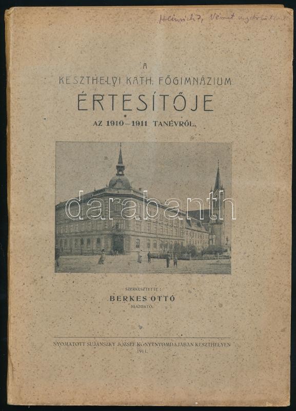 1911 A Keszthelyi Kath. Főgimnázium értesítője az 1910-1911. tanévről.... https://www.darabanth.com/en/400-Online-auction/400.0/Books/Books-Travelling-Local-History~1500002/1911-A-Keszthelyi-Kath-Fogimnazium-ertesitoje-az-1910-1911-tanevrol-Szerk-Berkes-Otto-~II2424558