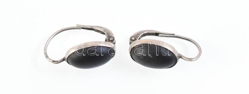 Ezüst(Ag) fekete köves fülbevalópár, jelzett, d: 1,5 cm, bruttó: 2 g