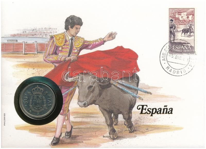 Spanyolország 1983. 50P felbélyegzett borítékban, bélyegzéssel, német ... https://www.darabanth.com/en/400-Online-auction/400.0/Numismatics/Envelopes-with-Coins-and-Banknotes~2000004/Spanyolorszag-1983-50P-felbelyegzett-boritekban-belyegzessel-nemet-nyelvu-leirassal-T1~II2448968