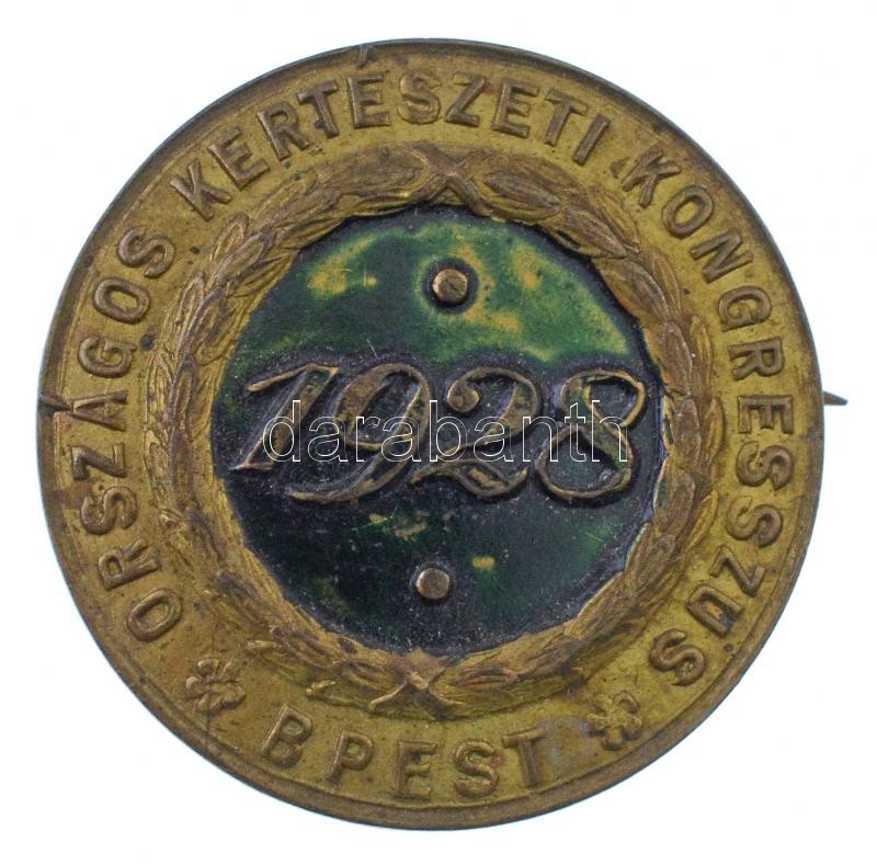 1928. "Országos Kertészeti Kongresszus Budapest" részben festett Br jelvény (26mm) T:2-