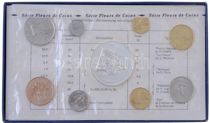 Description: Franciaország 1974. 1c-50Fr (9xklf) forgalmi sor eredeti tokban, közte Ag érme T:1