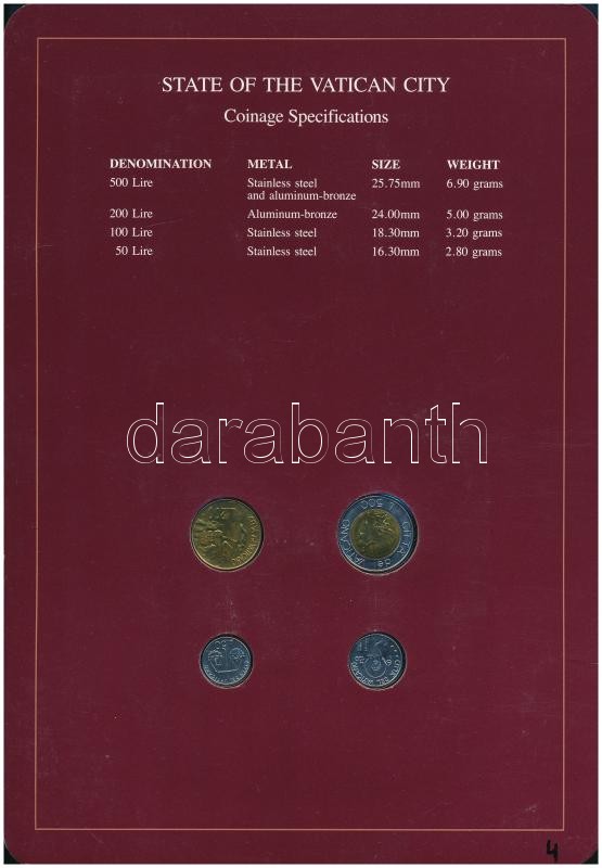 Vatikán 1991. 50L - 500L (4xklf), "Coin Sets of All Nations" forgalmi ...