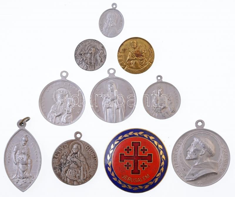 Description: ~1920-1960. 10db-os, érmekből és jelvényekből álló vallási tétel, közte 1938. "Euch. Kongresszus Budapest 1938 / Szt. István 1038-1938" Al emlékérem füllel (18x20mm) + 1948. "1947-1948 Boldogasszony Éve" Br lemezjelvény T:1-3