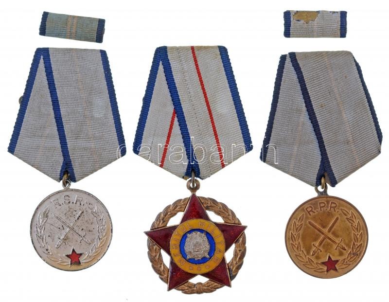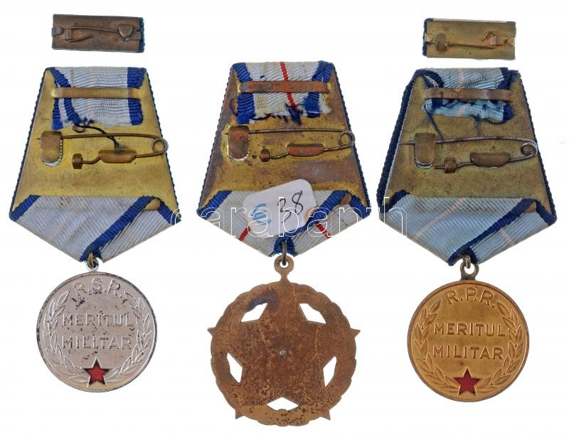 Románia 1954-1965. "Katonai Érdemrend I. és II. osztály" aranyozott és ezüstözött fém kitüntetések mellszalagon, szalagsávval, eredeti tokban + 1965-1989."Katonai Érdemrend III. osztály" zománcozott kitüntetés mellszalagon, szalagsávval, eredeti tokban T:2,2-
