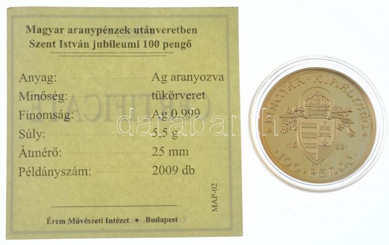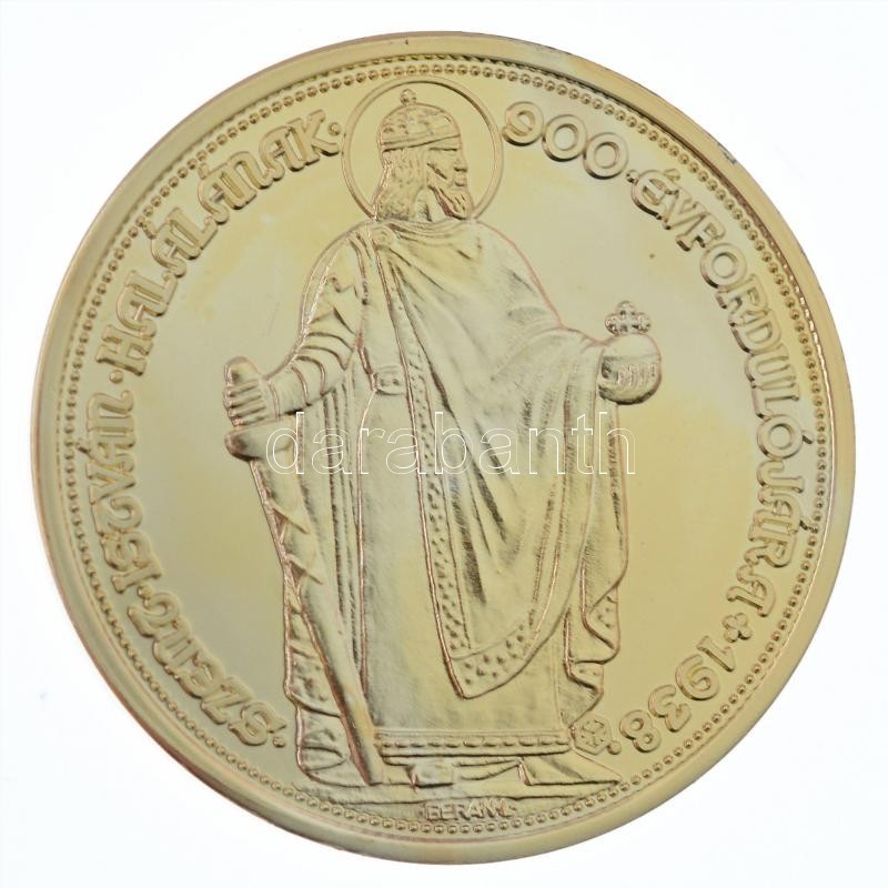 https://www.darabanth.com/en/400-Online-auction/400.0/Numismatics/Modern-restrikes-fantasy-coins~2000011/DN-Magyar-aranypenzek-utanveretben-Szent-Istvan-jubileumi-100-Pengo-aranyozott-Ag-emlekere~II2450553